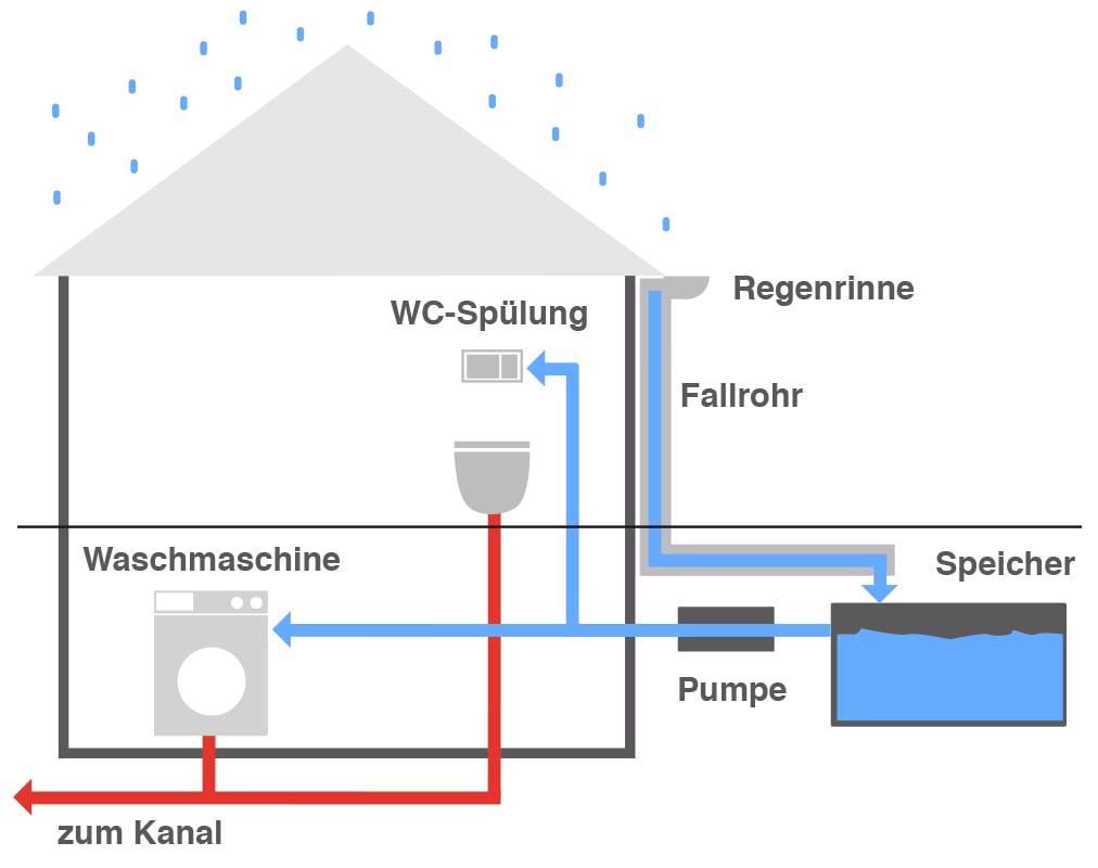Da Regen kalkarm und sehr weich ist, eignet er sich ideal für die Waschmaschine und schont somit die Wäsche. Ebenso kann das Regenwasser für die Toilettenspülung genutzt werden.